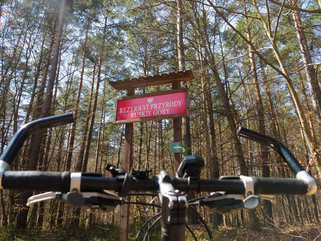 Nazwa rezerwatu nie jest bezpodstawna, Ruskie Góry to nierówny teren. Po delikatnym podjeździe moim oczom ukazuje się malownicza panorama na okolicę, która potwierdza jak zielona jest Jura. W tle wyrasta najwyższe wzniesienie Jury, czyli Góra Janowskiego. A rower sam zjeżdża z górki.
